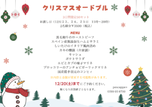 クリスマスケーキ、オードブルのご予約のご案内です🎄